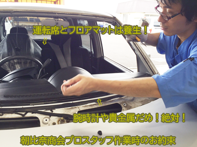 朝比奈商会では小さな傷の補修からガラスリペア、フロントガラス交換まで朝比奈商会ガラス職人が丁寧にご対応いたします。